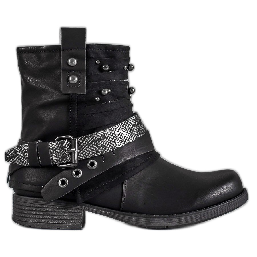 Fedezze fel a rendkívüli eleganciát és kényelmet a Bestelle Biker Boots női bokacsizmával, klasszikus fekete színben. Ezek a stílusos cipők a legjobb minőségű ökológiai bőrből készültek, amely nemcsak a tartósságot, hanem a viselési kényelmet is biztosítja. A magas felsőrész hatékonyan védi a lábfejet a kedvezőtlen időjárási viszonyoktól, míg a dekoratív csatok és strasszok egyedi karaktert adnak nekik.