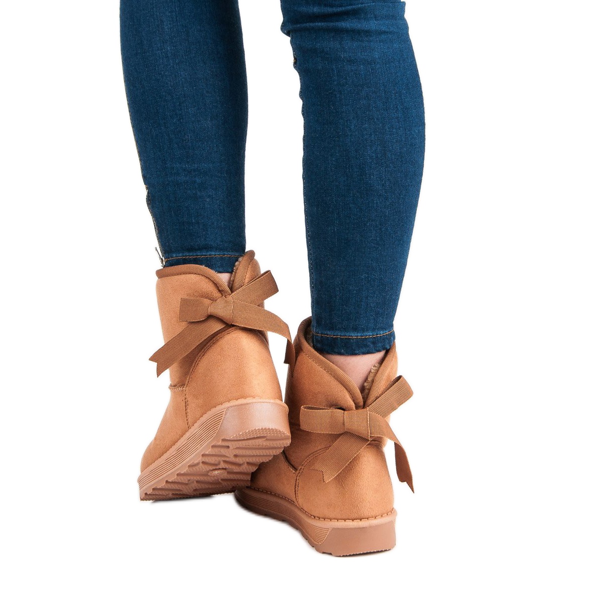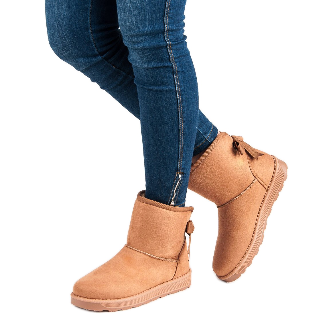 A barna masnival ellátott Mukluki tökéletes ajánlat minden nő számára, aki a stílust a kényelemmel szeretné ötvözni a hideg napokon. Ez az egyedi hócsizma nem csak stabil, de meleg is, így tökéletes választás a közelgő télre. Kiváló minőségű ökológiai velúrbőrből készültek, elegánsak és divatosak.
