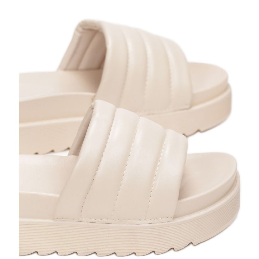 A satu MULANKA-2190-42 bézs színű papucsok tökéletes választás a mindennapi kényelmet és stílust kereső nők számára. Ezeket a divatos papucsokat vastag, bordás dombornyomású talp és protektor jellemzi, amely biztosítja a stabilitást és a megfelelő tapadást különböző felületeken. Széles pánt, amely hatékonyan tartja a lábfejet, és összeköti a lábujjakat a lábfej labdájával, ami garantálja a kényelmet viselés közben.