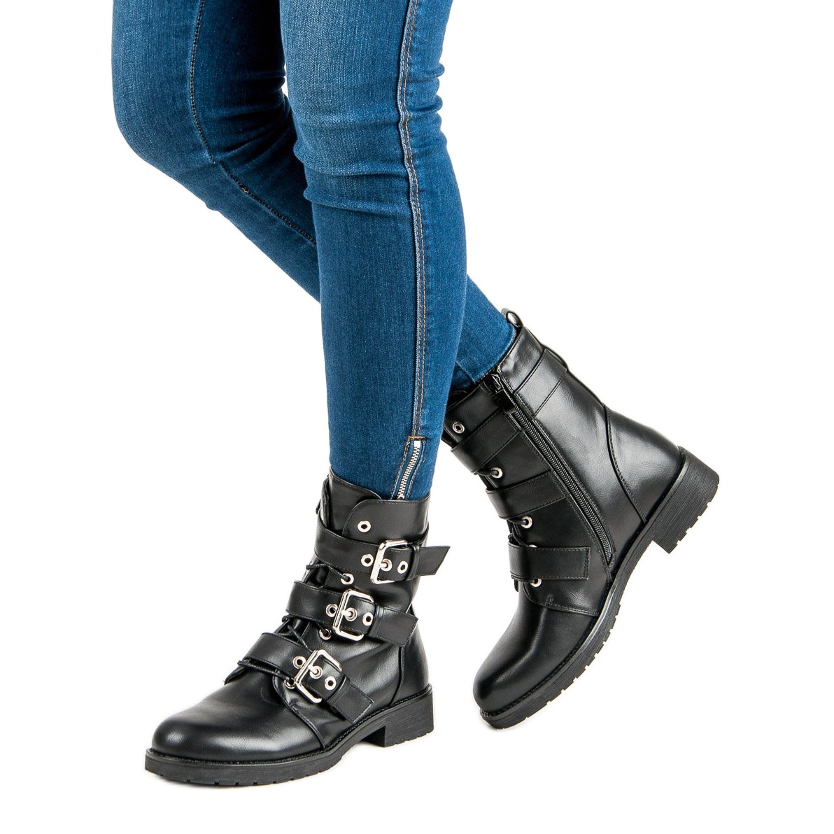 Ezeknek a cipőknek egy érdekes részlete a dekoratív ezüst csatok, amelyek karaktert kölcsönöznek nekik. A cipzárnak köszönhetően a felhelyezés tiszta öröm - nemcsak stílusos megjelenést, de kényelmet is nyerhet minden nap.