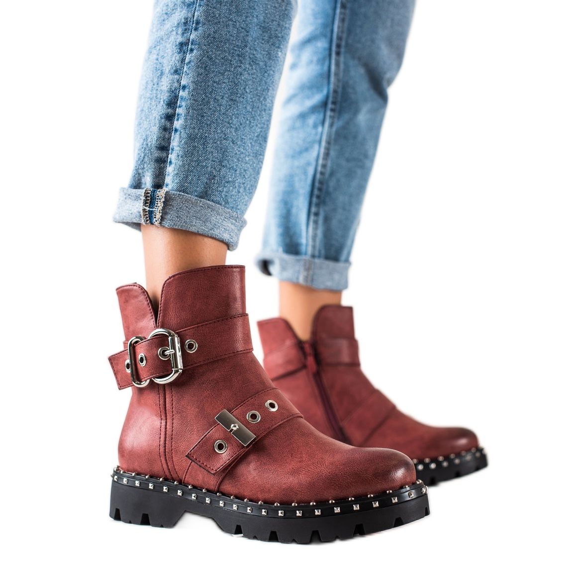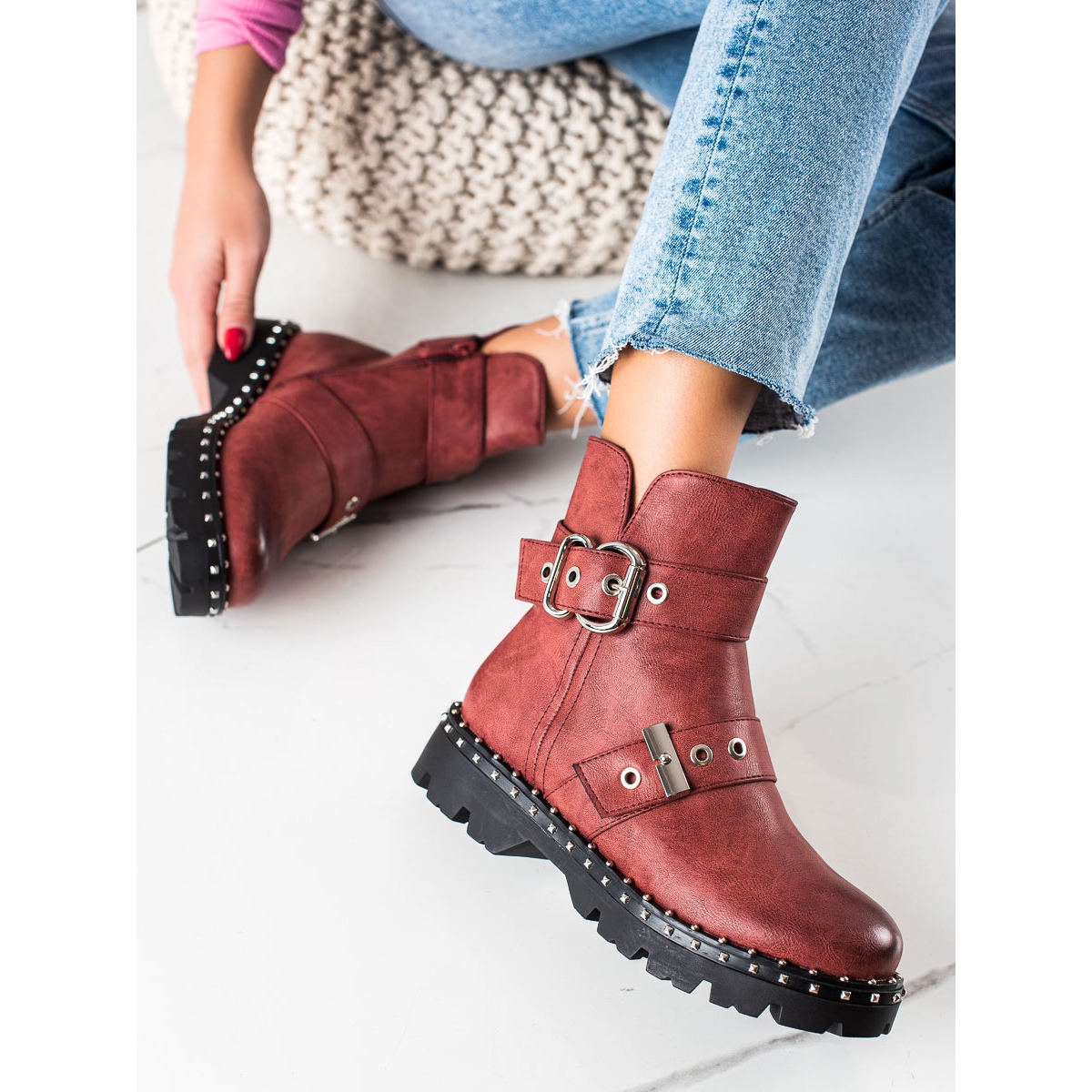 Fedezze fel a Janessa márka egyedi bokacsizmáját, amely tökéletesen illeszkedik a legújabb trendekhez. Ez a piros, strasszokkal díszített munkáscsizma tökéletes kombinációja az alkalmi stílusnak rock akcentussal, amely karaktert kölcsönöz mindennapi stílusának.