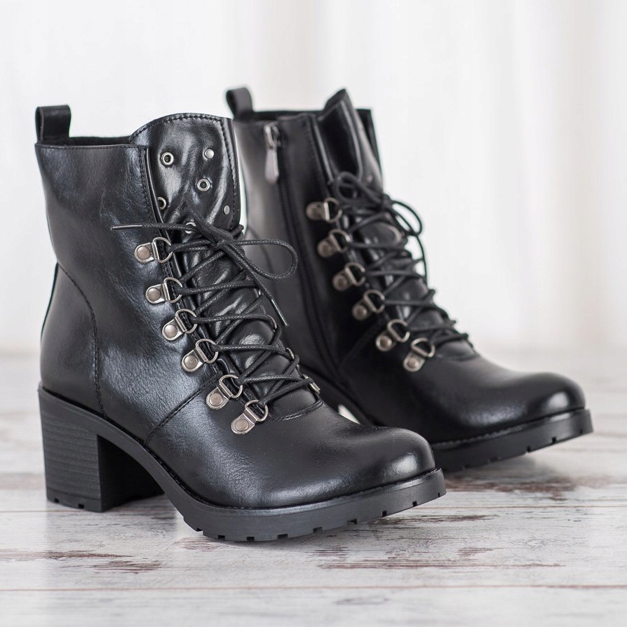 A fekete VINCEZA High Heel Workers tökéletes választás azoknak a nőknek, akik a stílus és a kényelem kombinációját keresik. A kiváló minőségű ökológiai bőrből készült bokacsizma tökéletesen illeszkedik a legújabb divatirányzatokhoz, ötvözi a hétköznapi és a rock stílust.