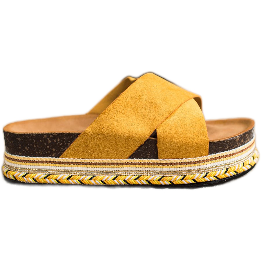 SHELOVET SHELOVET Mustáros velúrpapucs sárga