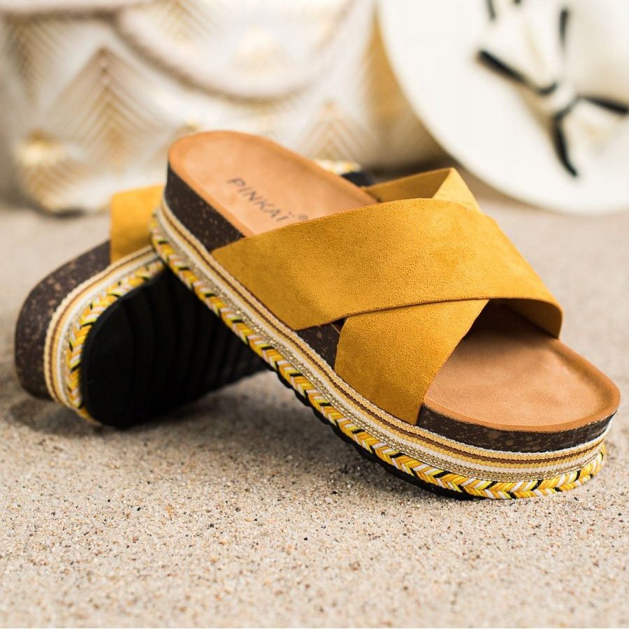 Az intenzív sárga színű, geometrikus mintázatú SHELOVET papucsok minden nyári stílusban tökéletes akcentusai lesznek. Tökéletesen passzolnak ruhákhoz és rövidnadrágokhoz is. Ezeknek a papucsoknak minden lépése az elegancia, a lezser stílus és a kényelem kombinációja – hagyja, hogy ruhatára elválaszthatatlan elemévé váljanak!