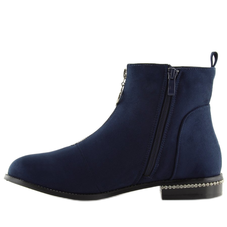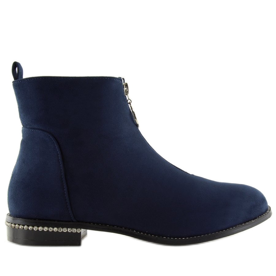 Fedezze fel az egyedülálló női sötétkék LL6300 Blue bokacsizmát, amely tökéletesen ötvözi az eleganciát a mindennapi kényelemmel. Az eredeti kialakításnak köszönhetően ezek a cipők tökéletes választás az őszi napokra. 2 cm magas lapos sarkuk van, amely egész napos viselési kényelmet biztosít, a strasszok formájú finom díszítések és az elülső ezüst cipzár egyedi karizmát kölcsönöznek nekik.