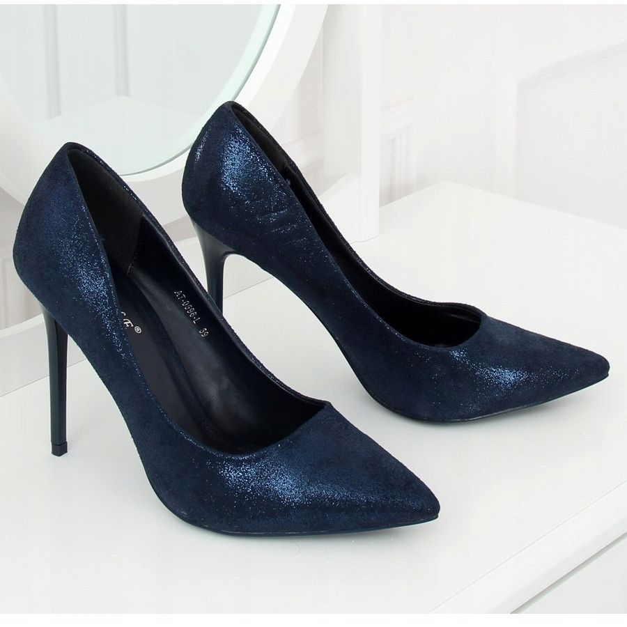 Részletek: Navy blue magas sarkú cipő AT-0596-L Kék sötétkék