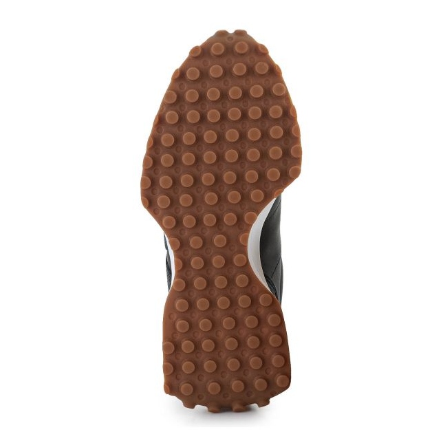 Az egyedi megjelenésével kitüntetett New Balance 327 sorozat lábbelije a megnagyobbított oldalsó "N" betűvel hívja fel magára a figyelmet, amely a márka klasszikus modelljeire utaló jellegzetes dizájnelem, megőrizve a modern hangvételt. A fekete színek kiegészítve további színes akcentusokkal - fehér logóval és barna talppal - szinte minden ruhához és alkalomhoz passzolnak a cipők.
