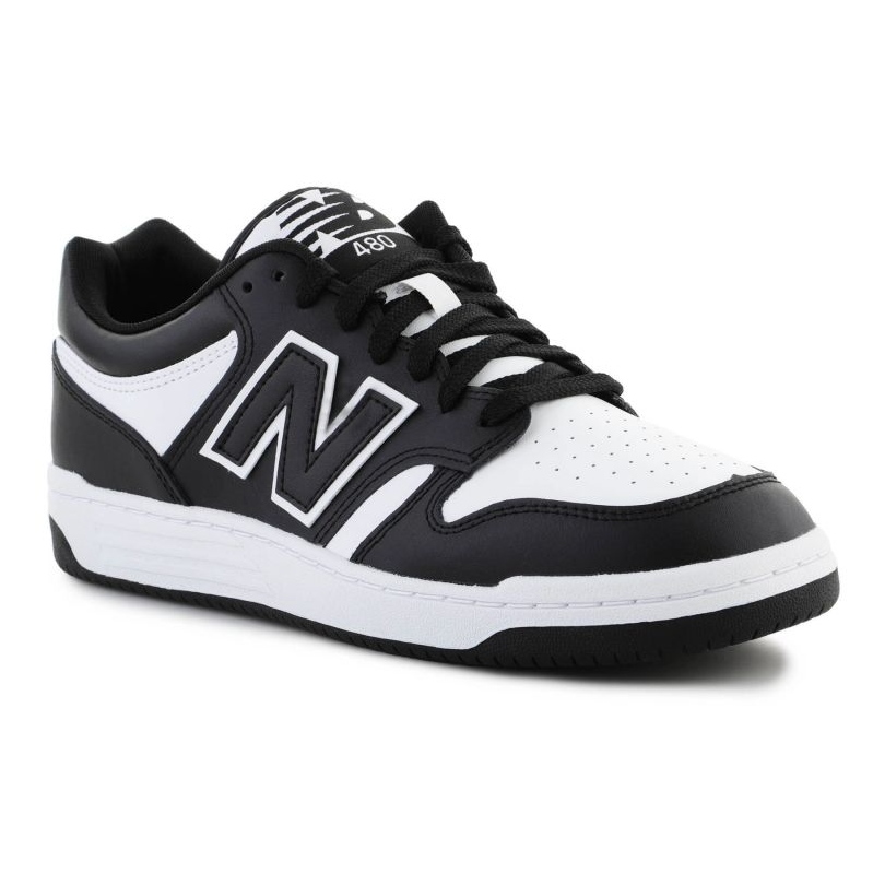 New Balance BB480 (fekete/fehér) cipő - klasszikus cipők, amelyeket kosárlabda stílus ihlette, az erőt a mindennapi használat kényelmével kombinálva. Fekete, kontrasztos fehér akcentussal és diszkrét logóval, univerzális, városi sport megjelenést hoz létre.