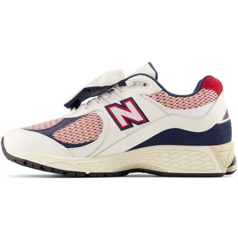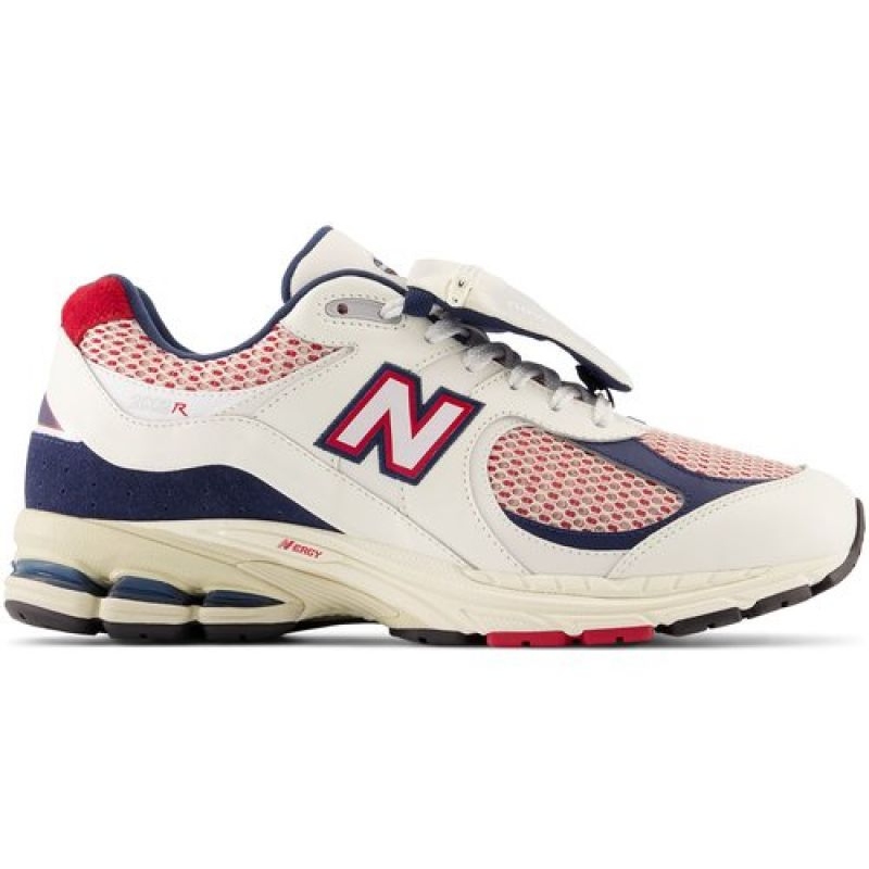 A New Balance M2002 Rve M cipők klasszikus fehér színekben kaphatók, piros és sötétkék díszítéssel, ami nem csak funkcionálissá, hanem divatossá is teszi. A csipkés rögzítés lehetővé teszi az egyéni illeszkedést, a szövet bélés pedig egész napos kényelmet biztosít.