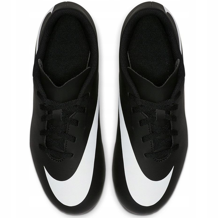 Nike Bravata II FG JR 844442 001 Labdarúgó -cipő - Azok a juniorok, akik éppen a labdarúgással kezdik el a kalandjukat, ebben a modellben, a tartósságban és a természetes pályán való tapadásban találják meg.