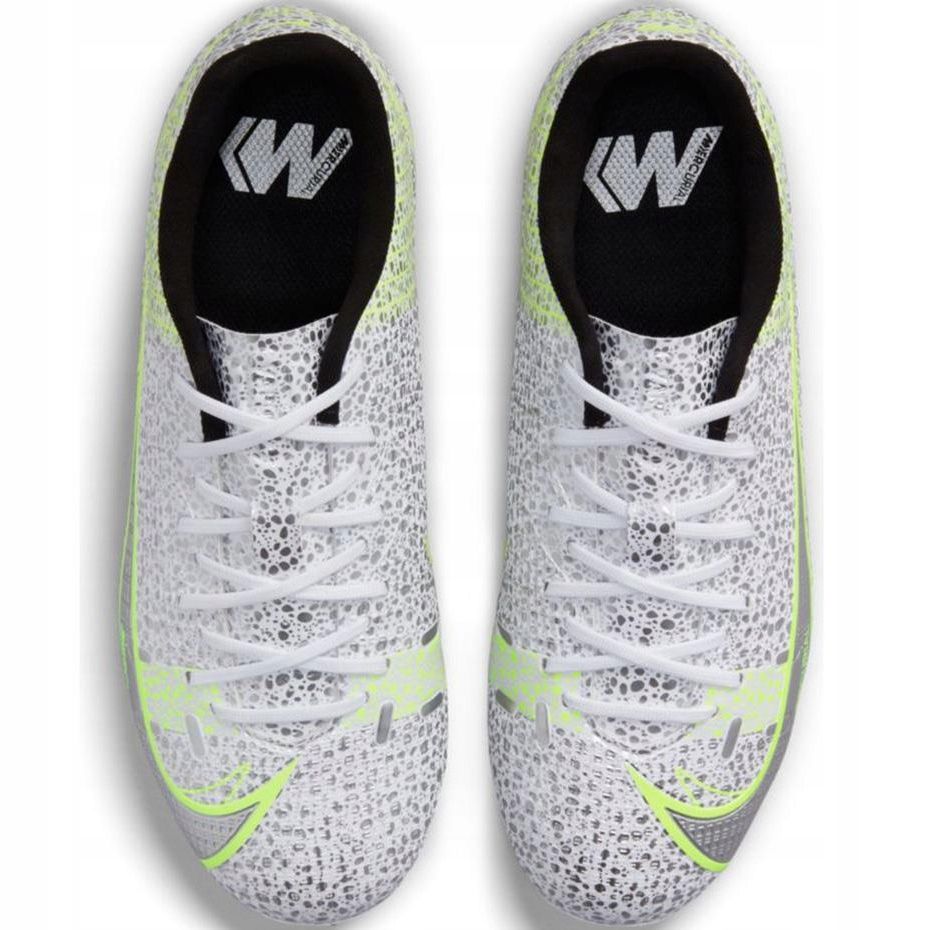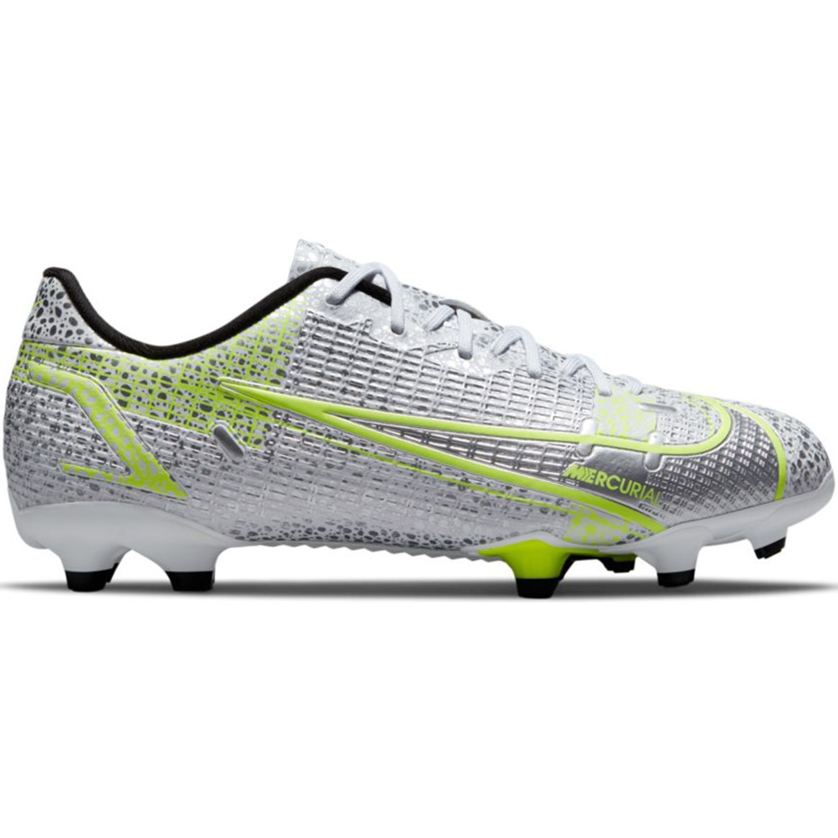 Nike Mercurial Vapor 14 Akadémia FG/Mg Junior CV0811 107 - Gyors, könnyű és készen áll a természetes és mesterséges fűben való játékra. A Mercurial Silver Safari kollekcióból származó modellt olyan fiatal játékosok számára tervezték, akiknek gyorsuláskor kell kapcsolatba lépniük a labdával és a dinamikával.