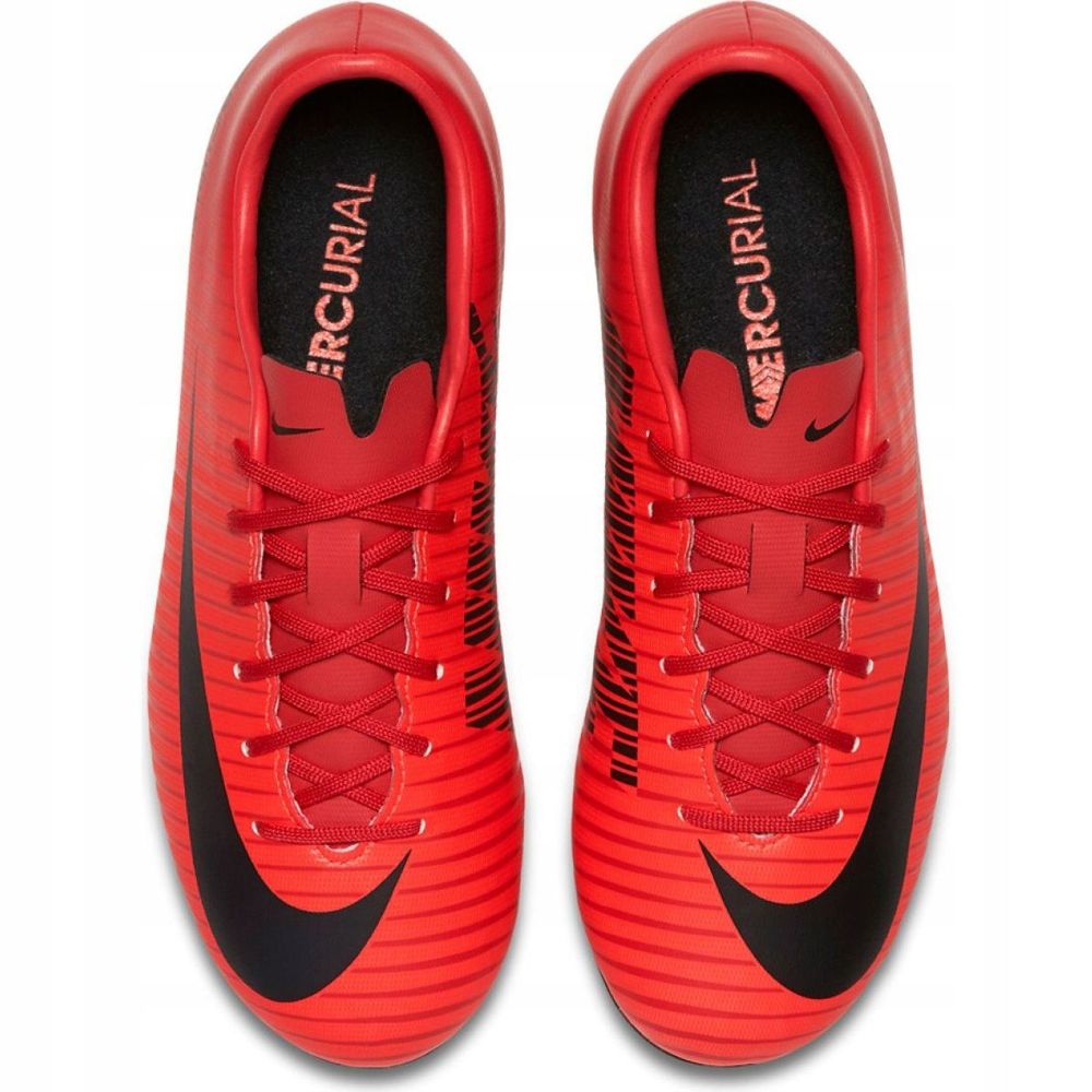 A Nike Mercurial Victory VI FG Jr 831945 616 cipő tökéletes választás fiatal futballisták számára, akik stílusosan és kényelemben szeretnék elérni sportcéljaikat. A feltűnő narancssárga-vörös színű alacsony kapcsok minden meccsen kiemelkednek a pályán.