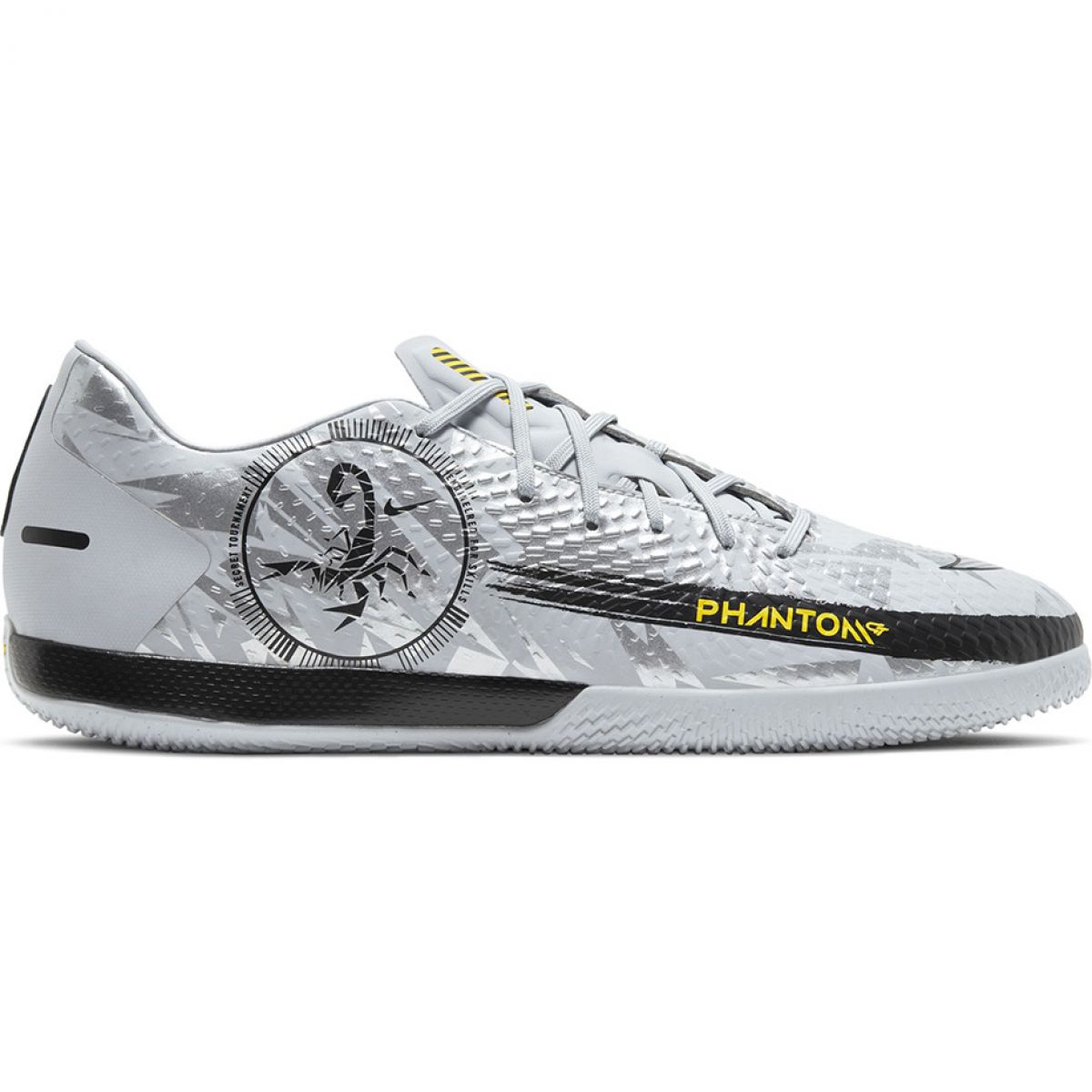 A Nike Phantom GT Scorpion Academy IC M futballcipő (DA2265 001 modell) tökéletes választás minden teremfoci rajongó számára. Modern, sokszínű dizájn jellemzi őket, amelyben a domináns szín az elegáns szürke, fekete és ezüst ékezetekkel. Ezek az alacsony férficipők a funkcionalitást és a stílust ötvözik, tökéletesen passzolva a sportos megjelenéshez.