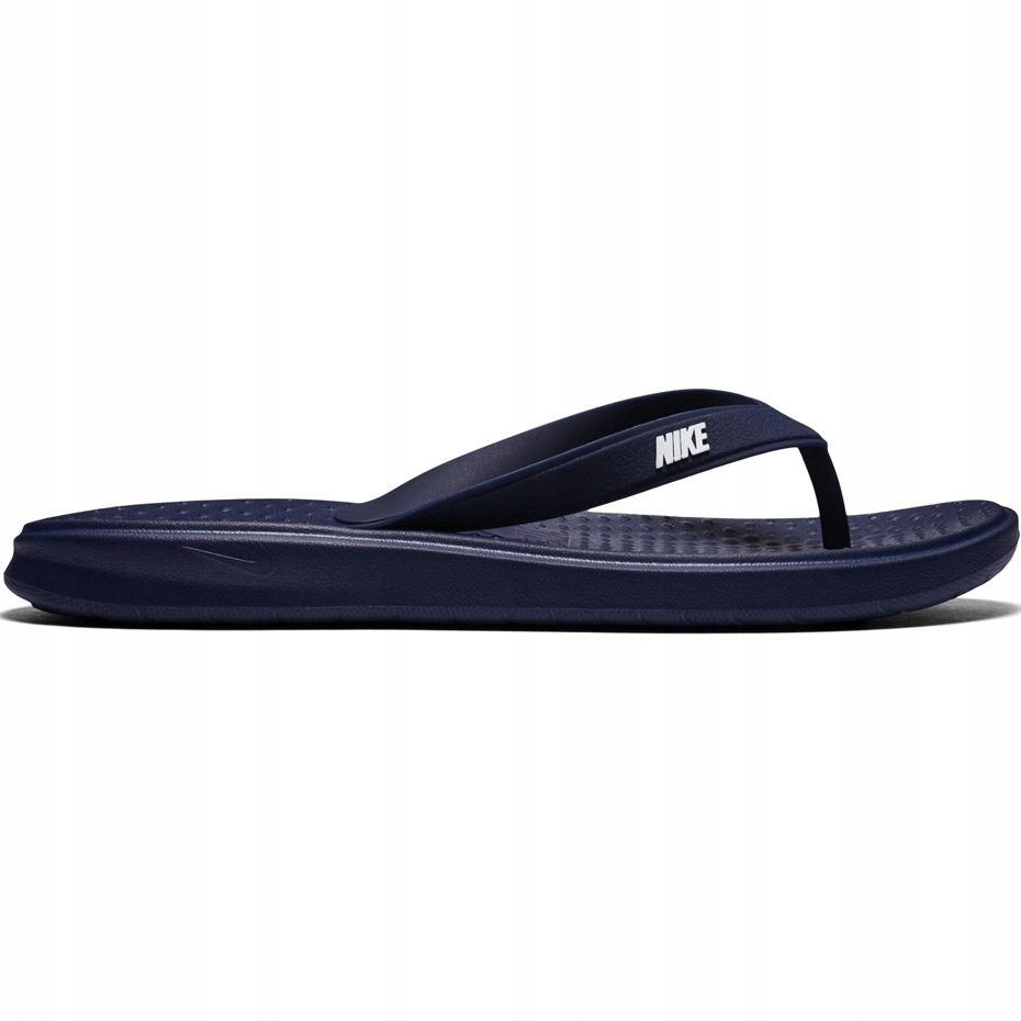 Nike Solay Thong 882690 400 flip flop - sötétkék flip -flopok olyan férfiak számára, akik kombinálják az egyszerűséget és a kényelmet. A könnyű kialakítás, a puha hab talp és a vékony gumi csíkok teszi tökéletes modellt a strandhoz, az otthonhoz és a nyáron gyors eredményekhez.