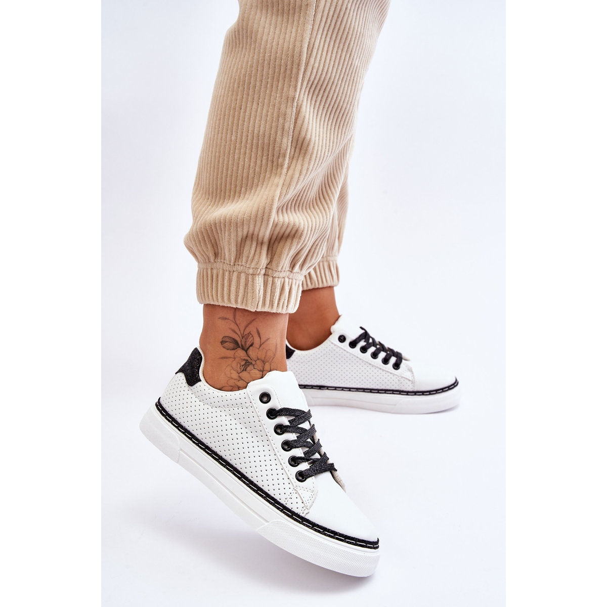 Részletek: BM Női alacsony perforált tornacipő, fehér és fekete Daxton