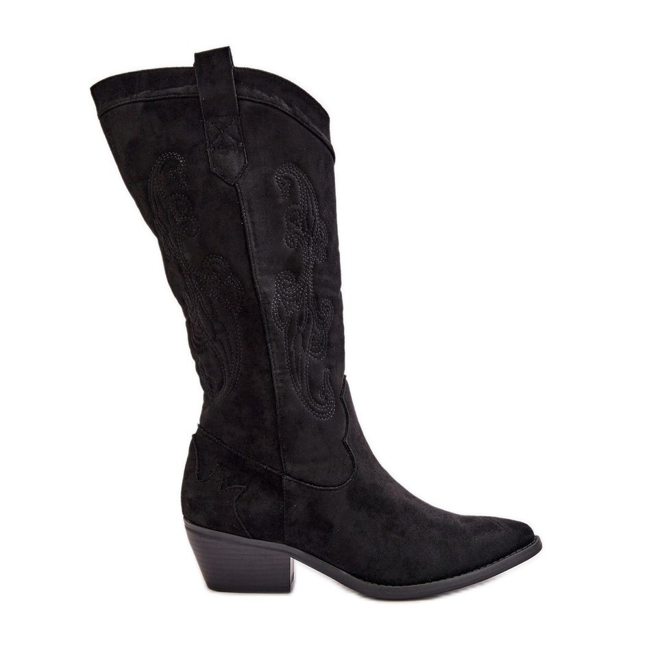 Részletek: Női alacsony sarkú Cowboy csizma Eco Suede Black Ligelia anyagból fekete