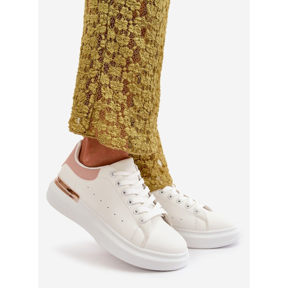 Részletek: Női alacsony szárú tornacipő ökobőrből készült platformon, fehér és rózsaszín, Nevelena