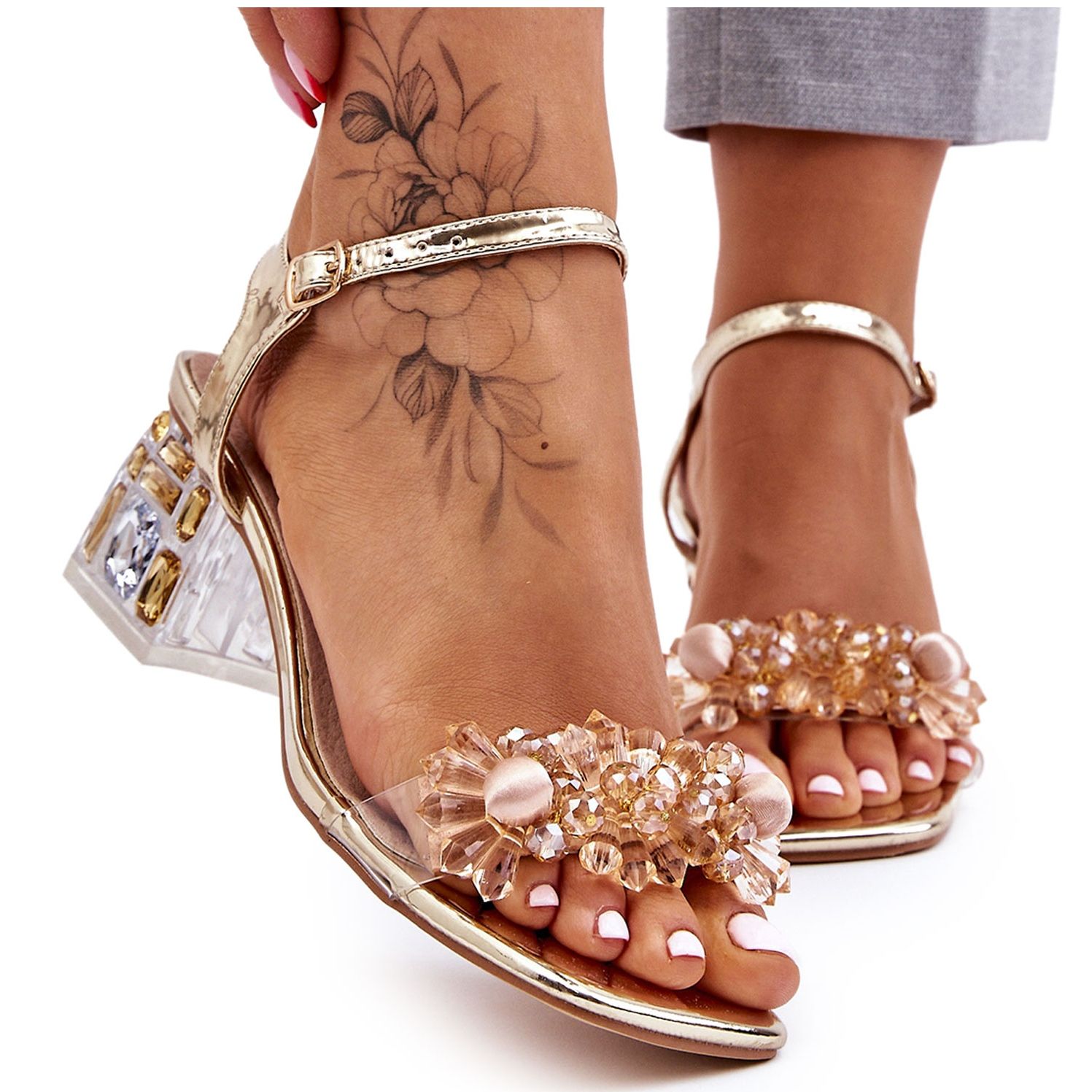 S.Barski Női alacsony sarkú szandál díszítéssel Golden Benicio kiváló választás azoknak a nőknek, akik értékelik az eleganciát és a kényelmet. Ezek az egyedi, stabil, alacsony sarkú, blokk formájú szandálok nem csak a viselési kényelmet, hanem a divatos megjelenést is biztosítják. A gyöngyös díszítőcsíkok egyedi karaktert adnak nekik, így tökéletesek különféle ünnepségekre és találkozókra.