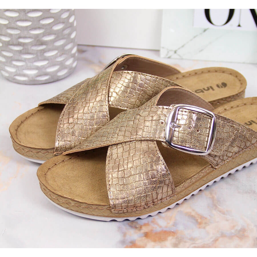 Részletek: Női arany színű Inblu papucs csattal aranysárga