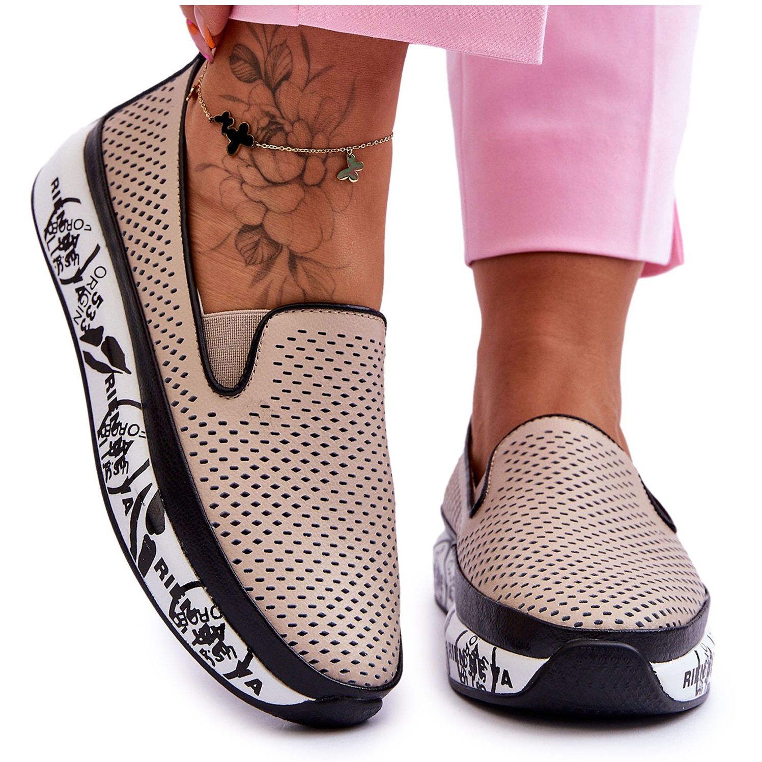 S.Barski S.Barski Női áttört bőr tornacipő Slip-On bézs Sorito