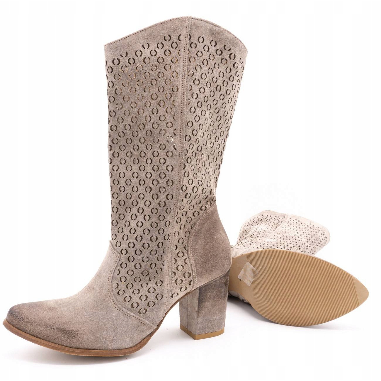A neves lengyel Exousite márka 1224 szürke, áttört bőr magas sarkú női csizmája kiváló választás az eleganciát és kényelmet kereső nők számára. A puha, természetes velúrból készült csizma a kiváló minőségű anyagokat modern dizájnnal ötvözi.
