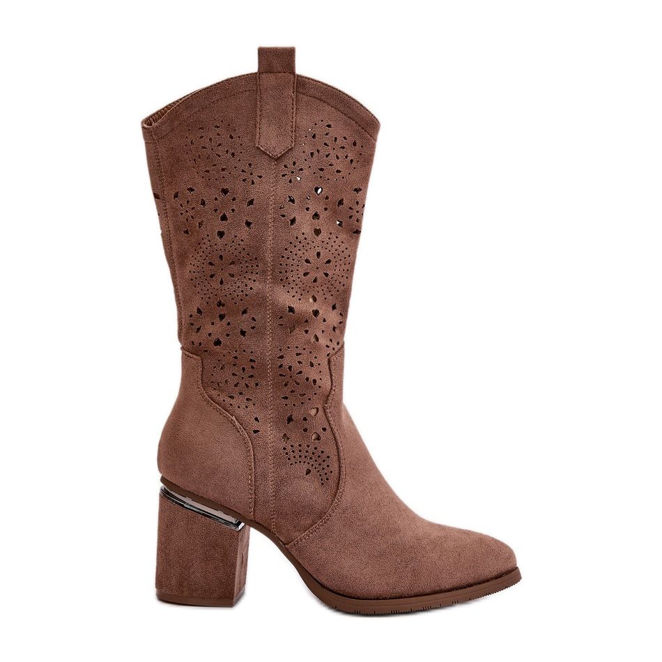 S.Barski Női áttört Cowboy csizma magas sarkú cipőben Eco Suede barna S.Barski HY42-028