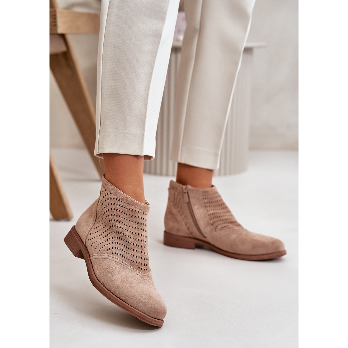 Részletek: Női áttört csizma lapos sarkú bézs S.Barski HY42-076