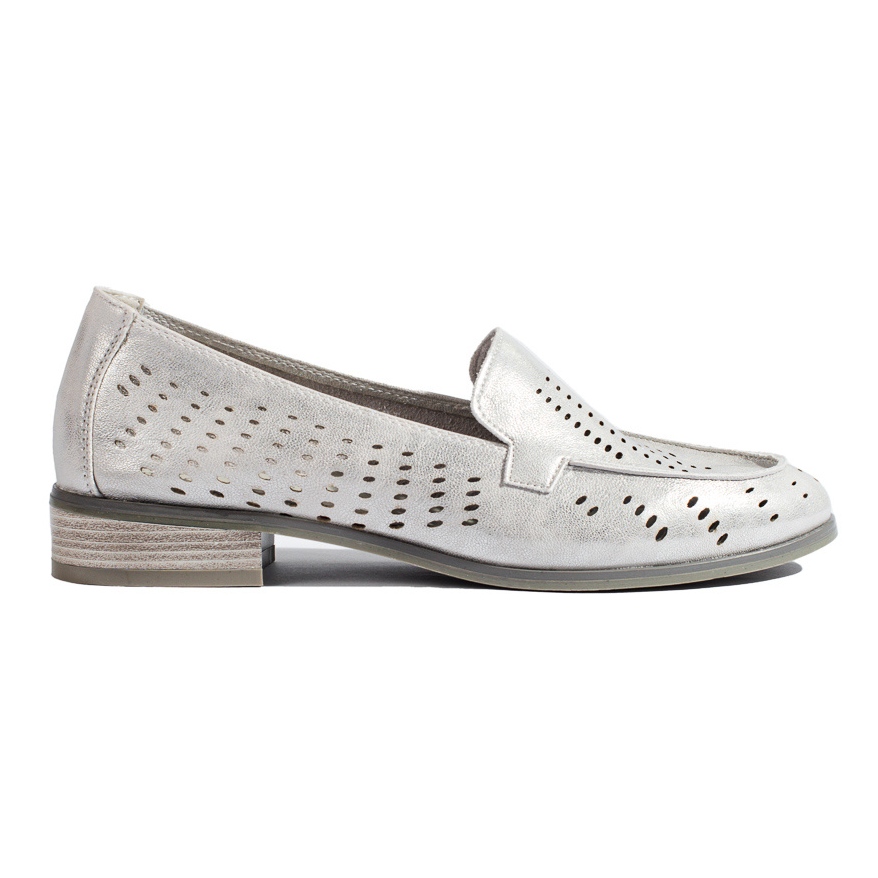 A Potocki ezüst áttört modellje egy egyedi lábbeli, amely fémes fényével és finom, de hatásos áttört mintájával hívja fel magára a figyelmet. Ezek a női mokaszinok tökéletes választás azoknak a nőknek, akik mindennapi használatra, de különleges alkalmakra is cipőt keresnek.