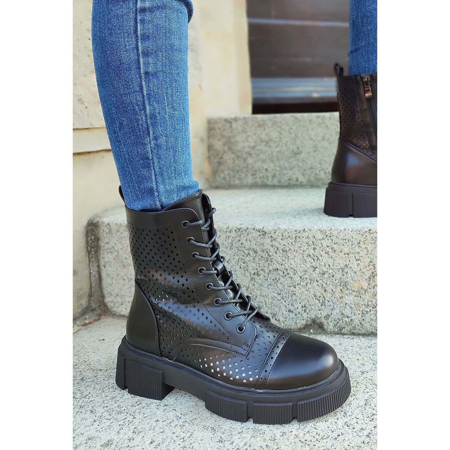 Az elegáns, nyitott csizma a Keeshoes kollekcióból javaslatot jelent azoknak a nőknek, akik értékelik a stílust és a funkcionalitást. Kiváló minőségű ökológiai bőrből (külső és beszúrás), időtlen fekete színűek, nagyszerűek, mint a mindennapi és elegánsabb stílusú stilizációk. A nyitott befejezés növeli a könnyedséget és javítja a szellőztetést, ezért a cipő univerzális tavasszal/nyáron és a melegebb őszi napokon. A felmelegedés hiánya azt jelenti, hogy nem szánták őket hideg téli napokra további szigetelő zokni nélkül.