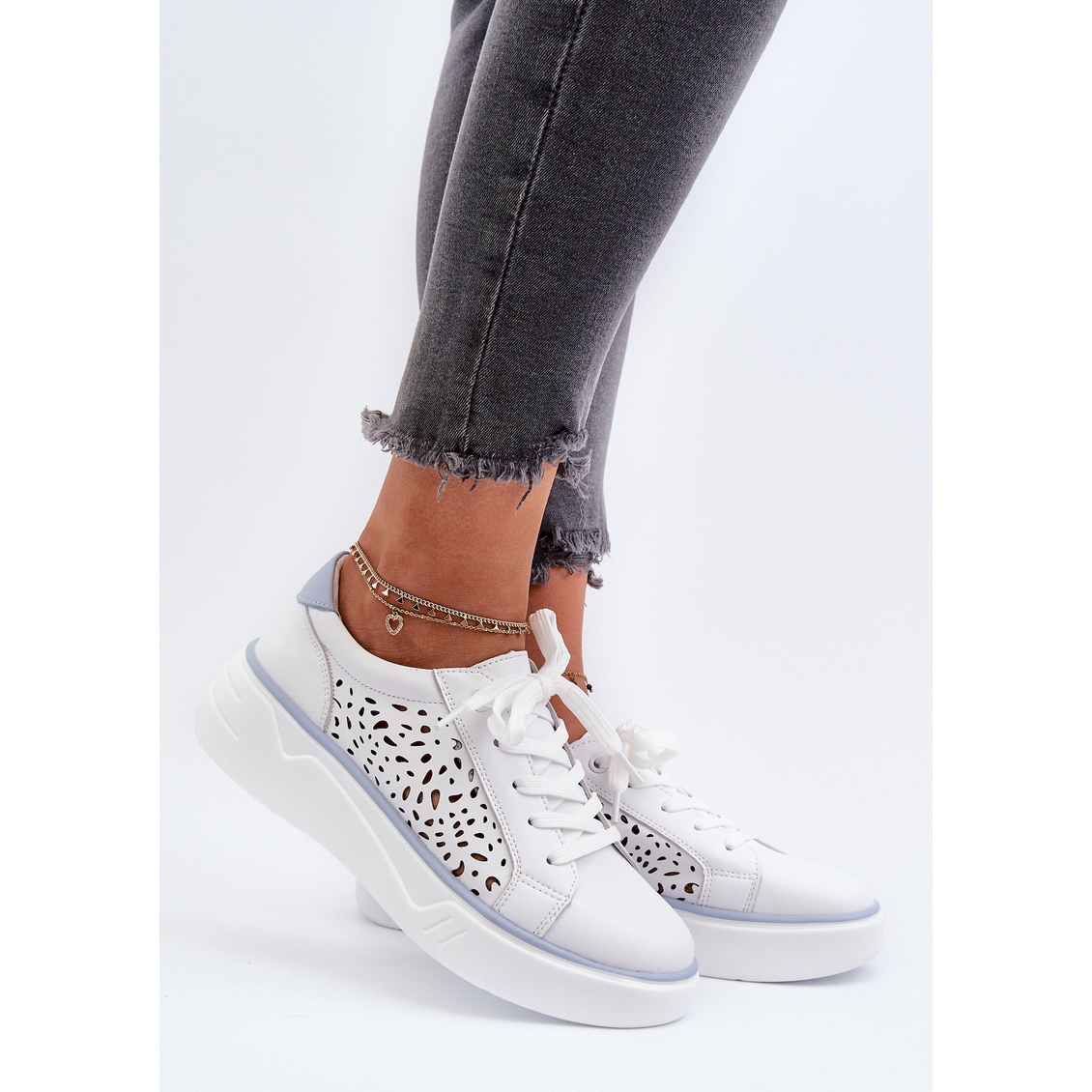 Részletek: Női áttört tornacipő a platformon, bőr fehér Peilaeno