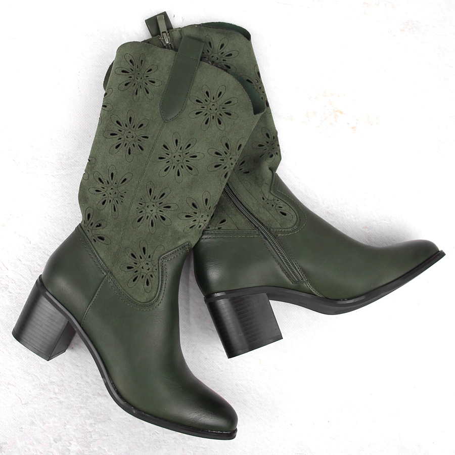 Részletek: Női áttört velúr csizma, zöld Jezzi RMR2337-11