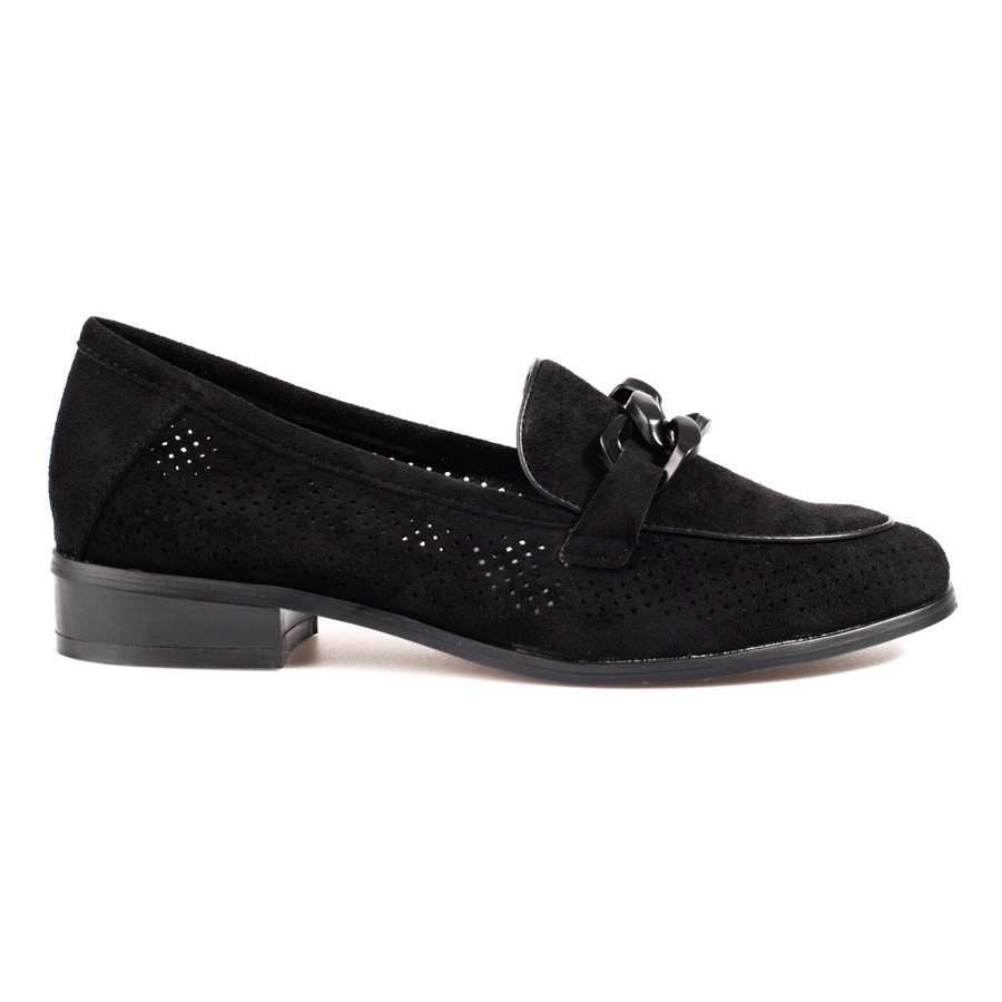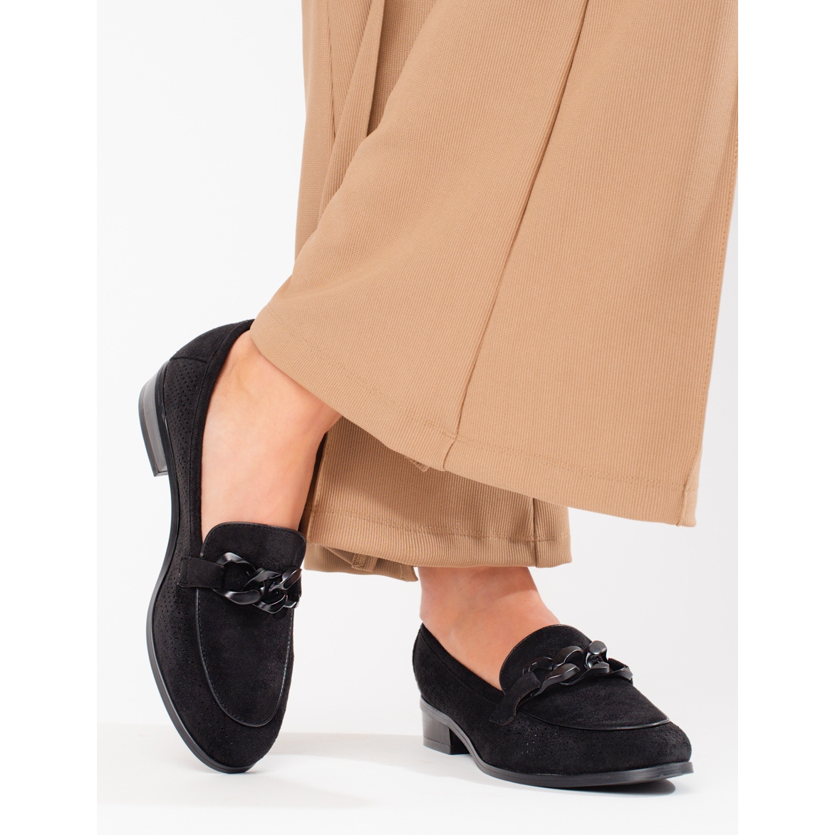 W. Potocki - Suede Női nyílt munkák, fekete loaferek