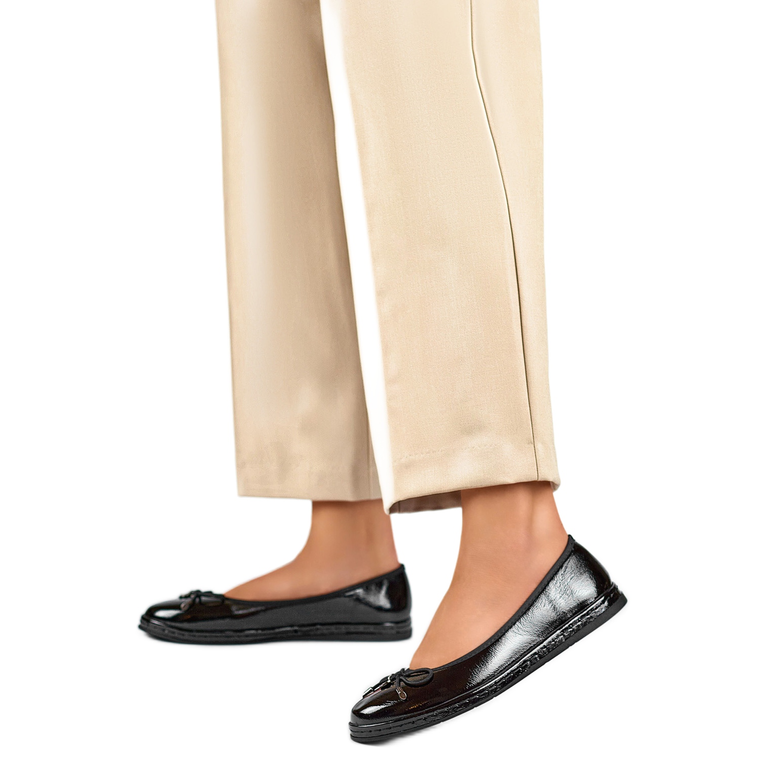 Részletek: Női balerinacipő masnival GD-XR392-B feketére lakkozott fekete