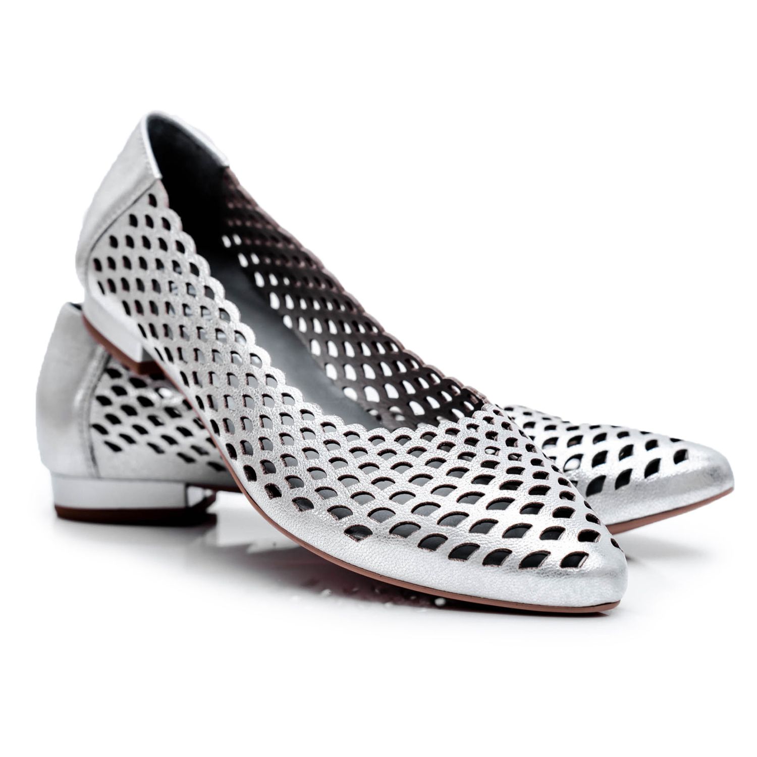 Részletek: Exquisite Női balerinák ezüstbőrű finom 1107/1 szürke