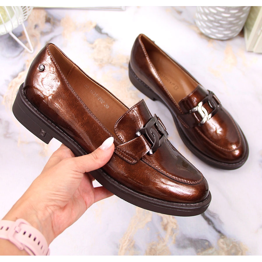 A legjobb minőségű ökológiai lakkbőrből készült felsőrész vonzó megjelenést kölcsönöz nekik, a természetes bőrbetét pedig egész napos viselési kényelmet biztosít. A mokaszinokat kerek orr jellemzi, ami kiemeli klasszikus szabásukat. 3 cm-es sarokkal ezek a cipők tökéletesek a legkülönfélébb alkalmakra - munkára és társasági alkalmakra egyaránt.