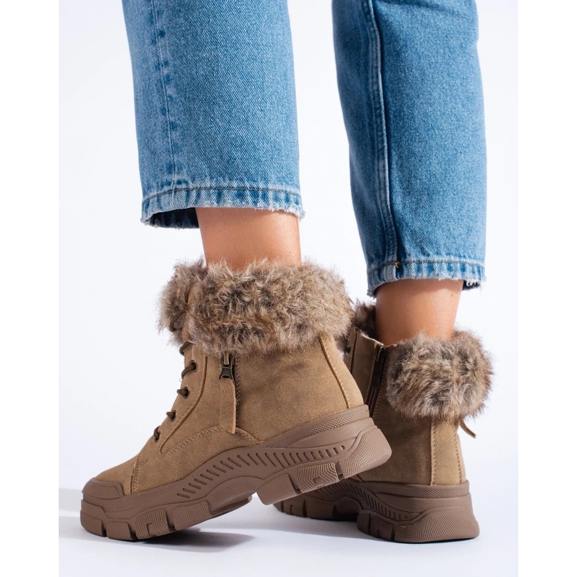 Bézs női csizma szőrme (bézs) - meleg, kényelmes és stílusos az őszi/téli szezonra