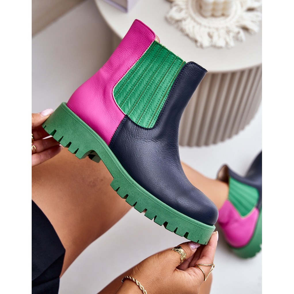 Lewski Shoes Lewski Shoes Női bebújós bőr lapos csizma Lewski 3611 Multicolor kék