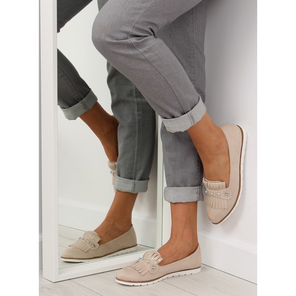 Fedezze fel az egyedi stílust és kényelmet a DM30P Beige női bézs mokaszinokkal. Ezeket az eredeti cipőket elegáns lakkozott rojtok különböztetik meg, amelyek egyedi karaktert adnak nekik. Az ezüst strasszok kiegészítő dekorációként ezt a modellt tökéletesen illeszkednek a legújabb divatirányzatokhoz.