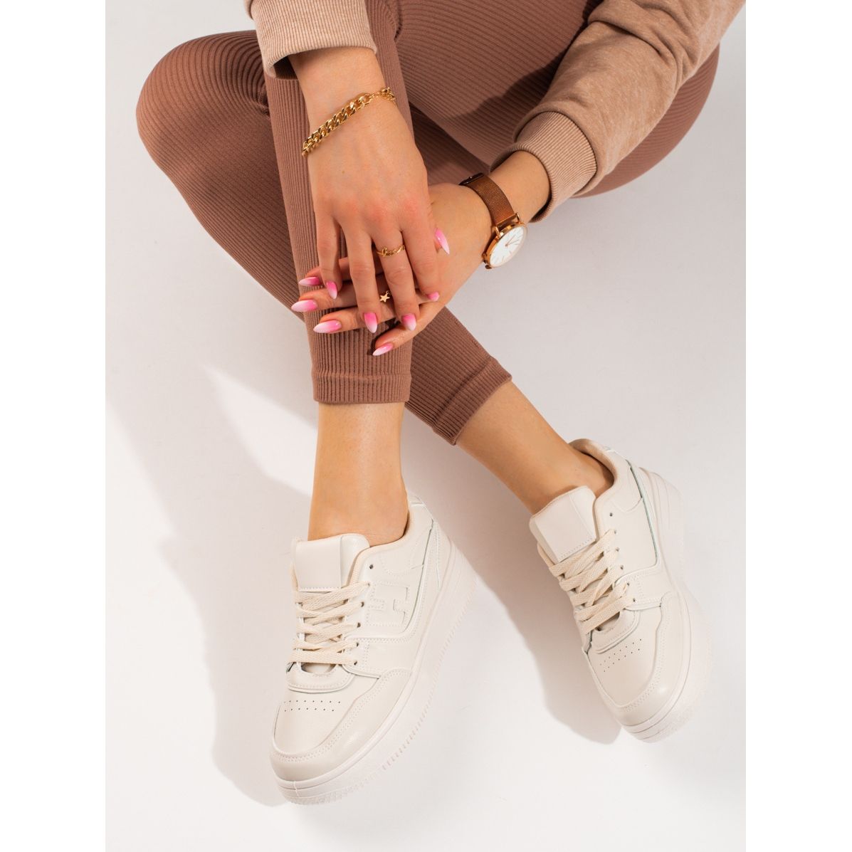 A Shelovet bézs színű női tornacipői ideális ajánlat azoknak a nőknek, akik értékelik a divatos, sportos stílust és a mindennapi kényelmet. A 100%-ban kiváló minőségű anyagokból készült cipők egyesítik az eleganciát a funkcionalitással.