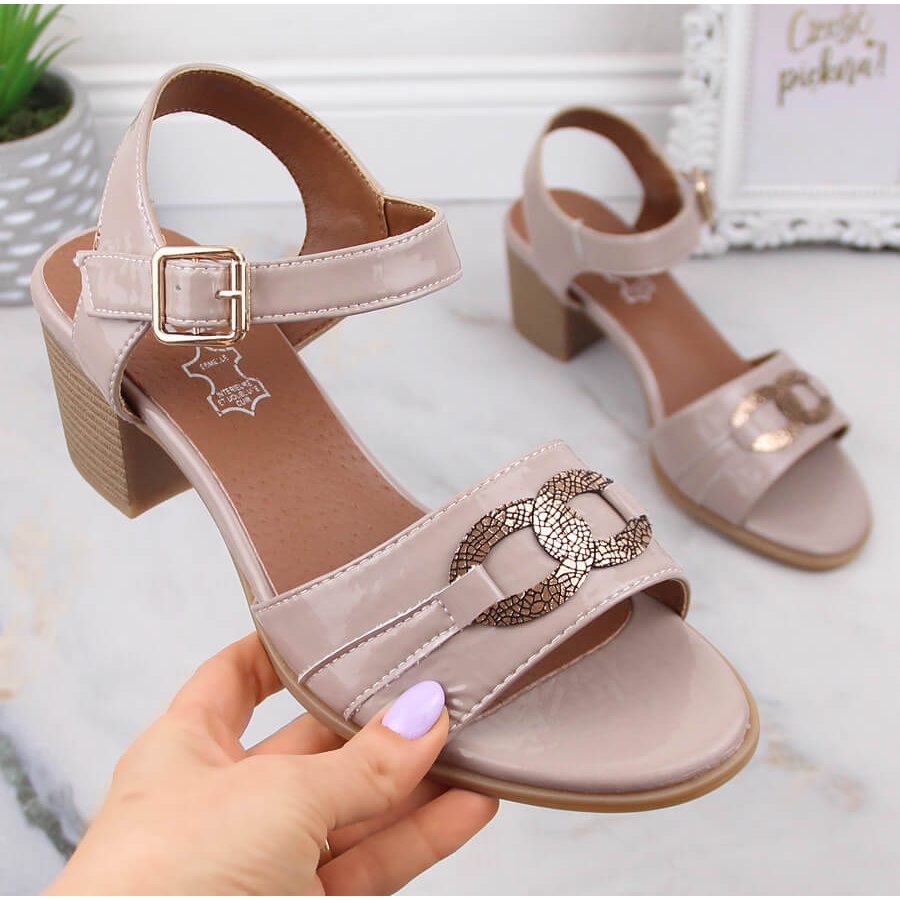 Részletek: Női bézs színű lakkozott szandál a poszton Jezzi SA69-31