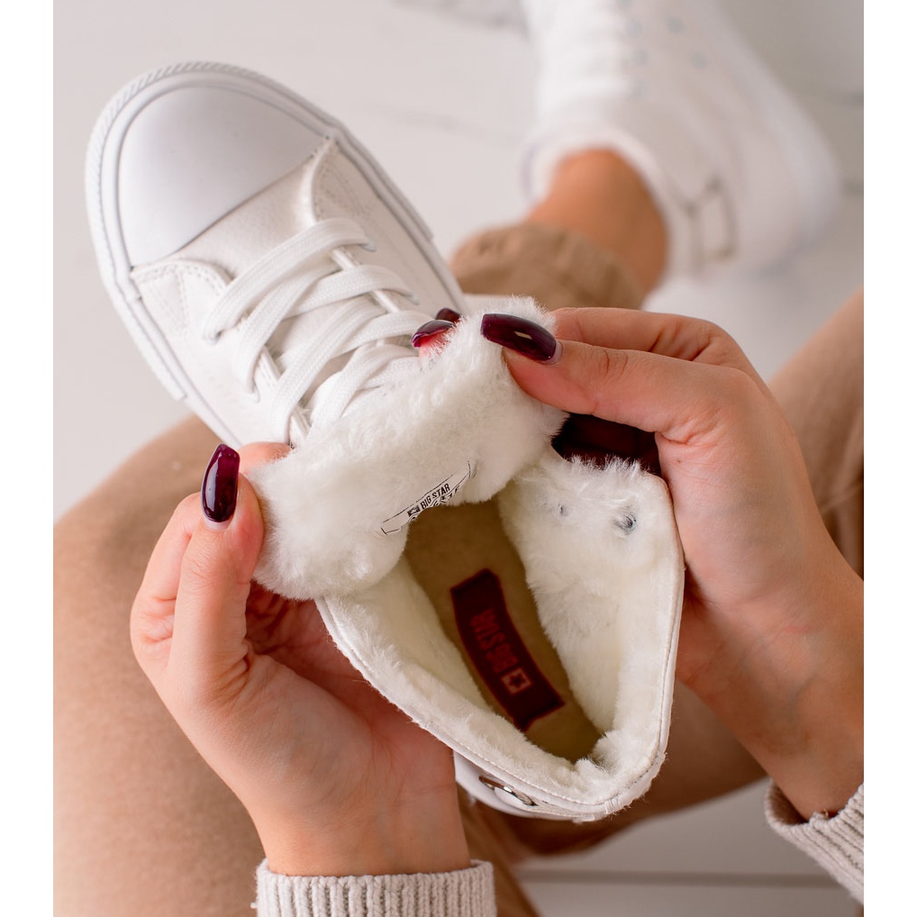 A Big Star V274541 fehér női tornacipő ideális választás azoknak a nőknek, akik értékelik a kényelmet, a stílust és a modern dizájnt. A kiváló minőségű anyagokból készült, magas szárú tornacipők műbőr felsőrésszel rendelkeznek, amely nem csak elegáns megjelenést, hanem könnyű karbantartást is garantál. Puha, beépített sarok egész napos viseletet tesz lehetővé, a szőrmeszigetelés pedig nem csak a tavaszi és nyári, hanem az őszi napokra is tökéletessé teszi őket.