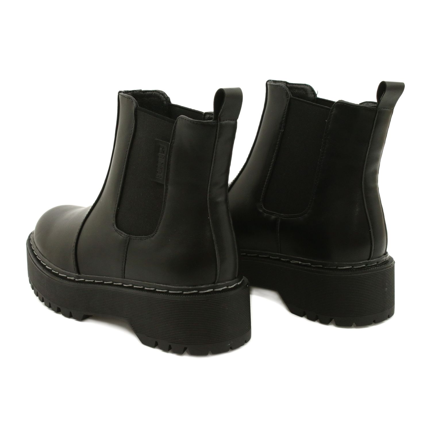 Női Big Star II274101 csizma - fekete csapdák, amelyek télen melegítik a stílust és a lábát. A modern, nőies vágás kombinálja a városi stílust a gyakorlati megoldásokkal: a boka felső 14,5 cm magas, kerek orr és egy stabil platform, amelynek magassága 4,5 cm -es magasságban van egy bizonyosság és finoman vékony az ábra.