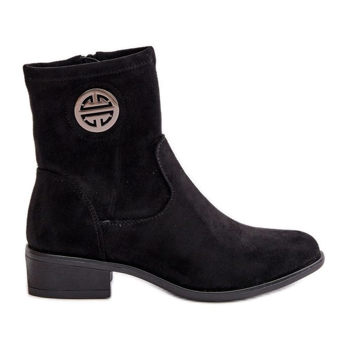 Inna marka Női bokacsizma cipzárral, dekoratív részlettel, Eco Suede, fekete Lerioria