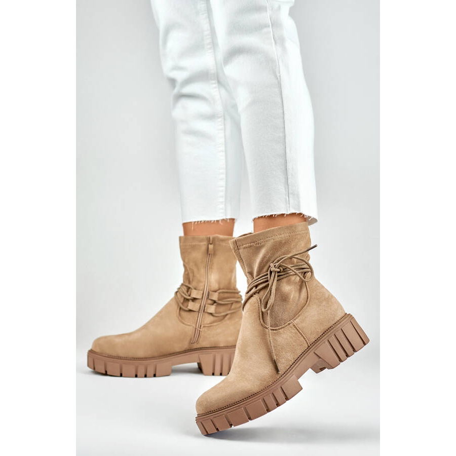 Inna marka Női bokacsizma elasztikus fűzős felsőrésszel, bézs DE1127NU