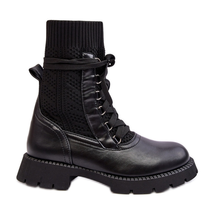 Részletek: Női bokacsizma fűzős zoknival, fekete Gentiana