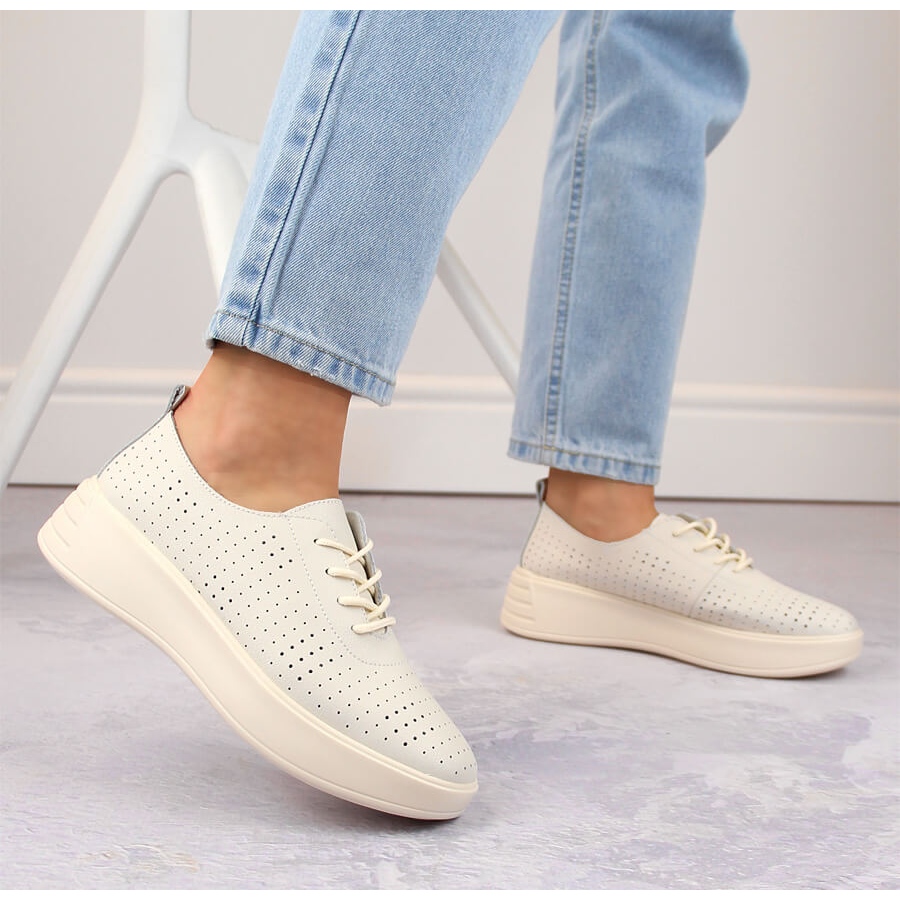 A cipők gyönyörű bézs színben kaphatók, amely tökéletesen illeszkedik bármilyen tavaszi, nyári vagy őszi stílushoz. Egyedülálló, lezser szabásúvá teszi őket mindennapi viselet elemeként és elegánsabb kombinációkban is. A természetes bőr talpbetét egész napos kényelmet garantál, az ökológiai bélés pedig megfelelő kényelmet biztosít.