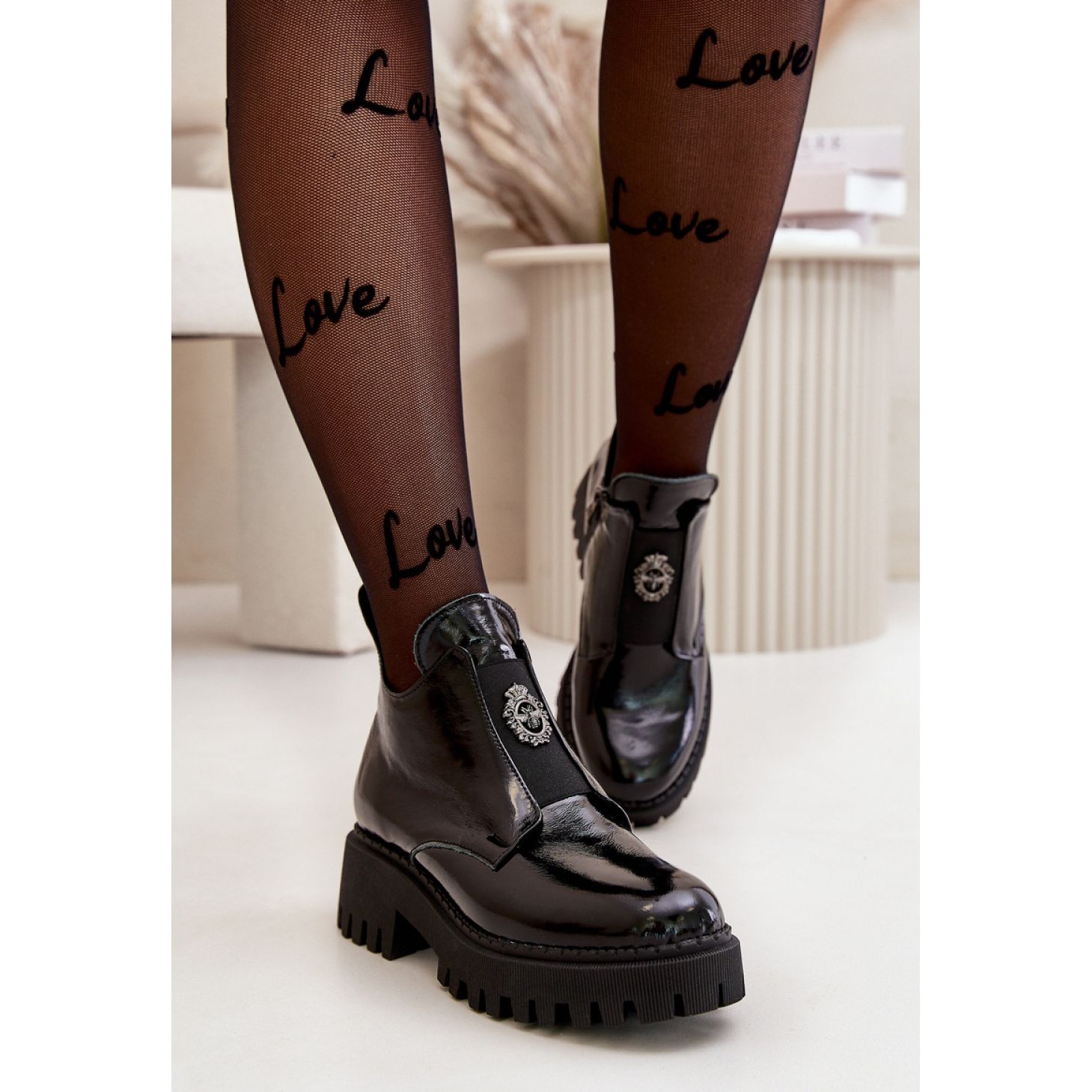 Inna marka Női bőr bokacsizma Zazoo Black díszítéssel fekete