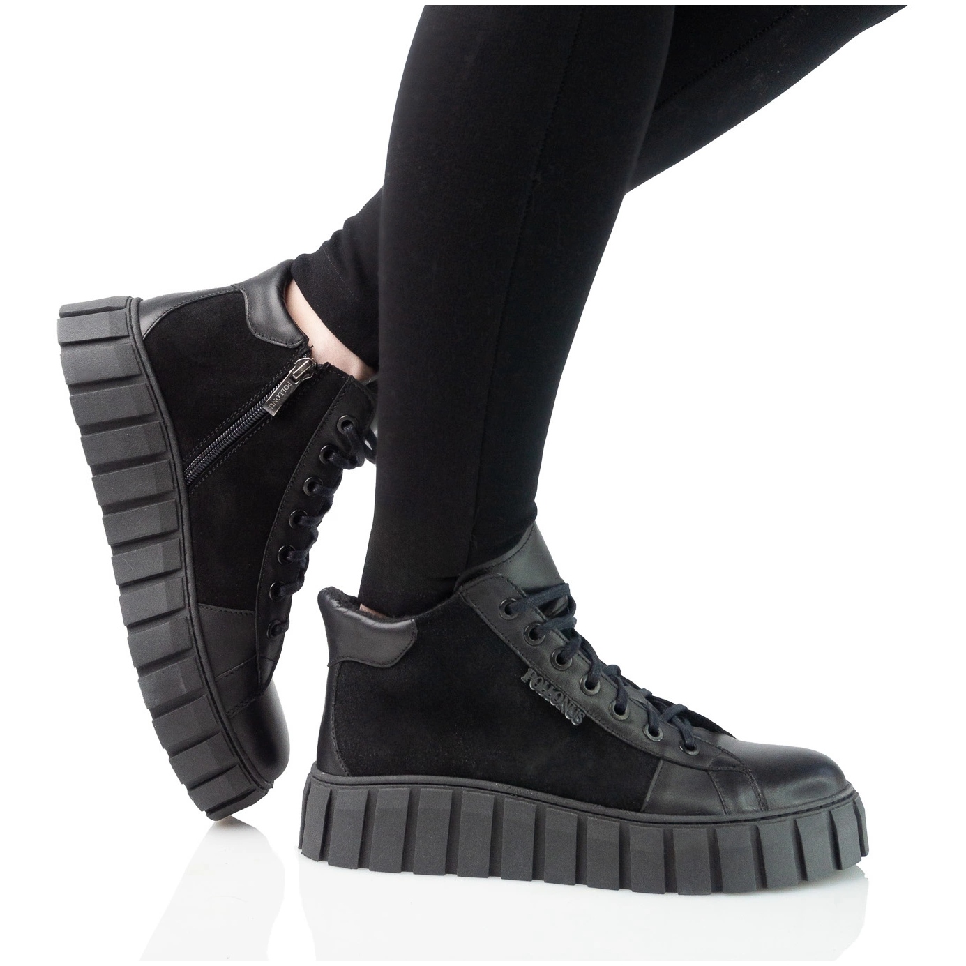 Ezek a cipők arcból és velúrból készülnek, ami garantálja a használat tartósságát és megbízhatóságát. Ezenkívül lábbeli takaróval szigetelve hőt biztosítanak, ami különösen fontos a téli séták során. A felső beállítható kerülete lehetővé teszi az egyes lábak számára tökéletesen illeszkedést, ami növeli a viselkedés kényelmét.