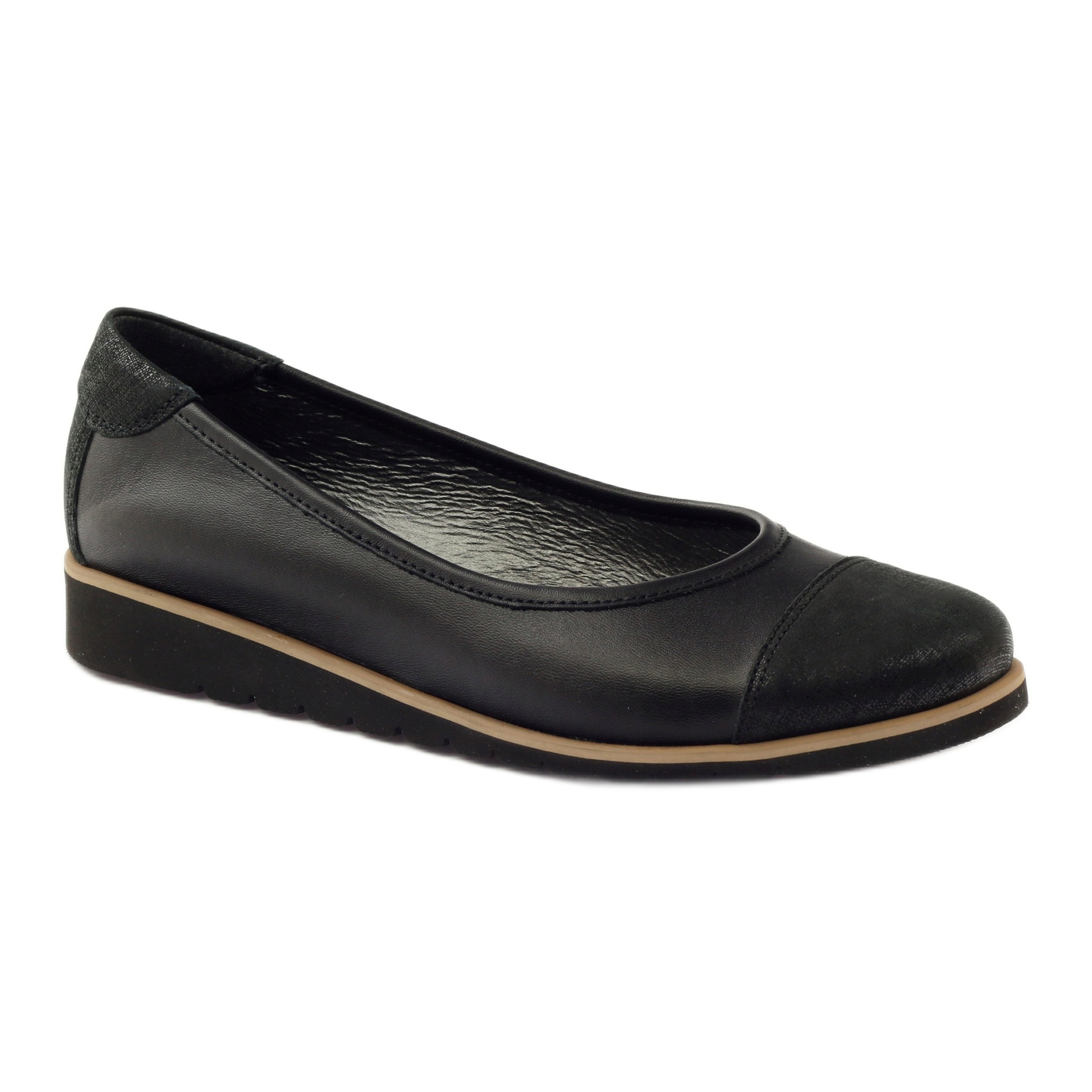 Elegáns, univerzális mokaszinok a lengyel Angello márkától, 1325-ös modell. Teljes egészében természetes gabonabőrből készült, klasszikus fekete színben, új generációs könnyű és rugalmas talpon, kis ékkel (2,5 cm). A belseje bőrbetéttel van bélelve, amely elnyeli az ütéseket, így nagyobb viselési kényelmet biztosít.