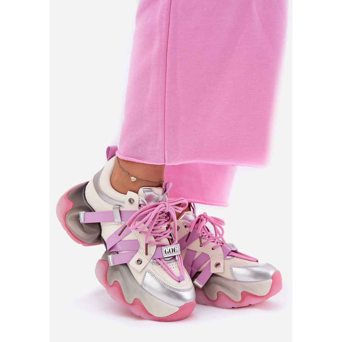 Részletek: GOE Női bőr cipők a hatalmas talpon rr2n4030 rózsaszínen